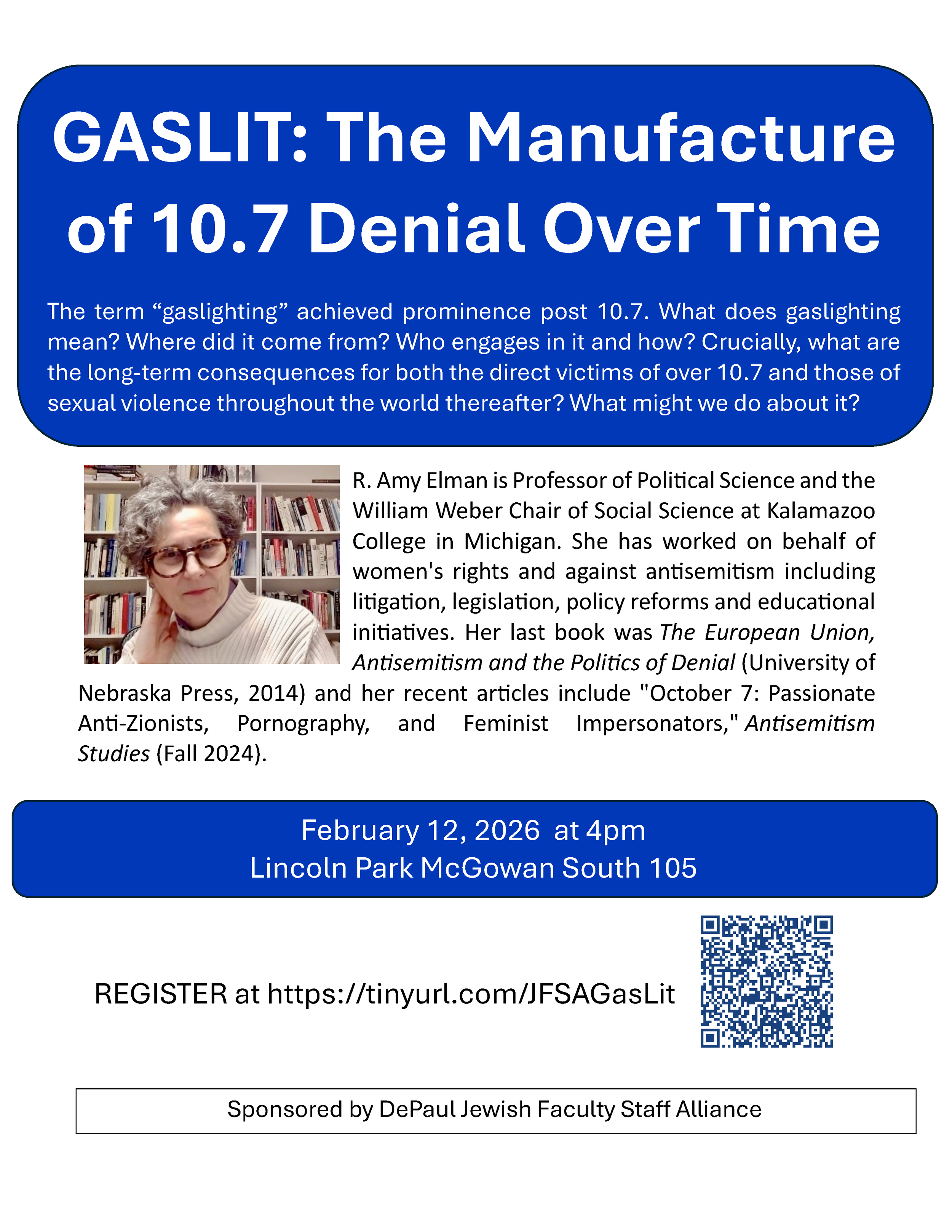For the Jewish Faculty Staff Alliance - Please make a gift of any size on Thurs., Jan 22. challenge.depaul.edu and search for (Fund for the Jewish Faculty Staff Alliance” (General—>Additional Funds--> Fund for the Jewish Faculty Staff Alliance) in the drop-down box marked 'Designation’.